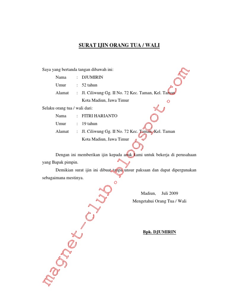 Contoh Surat Izin Orang Tua : Download Contoh Surat Persetujuan Orang Tua Wali Untuk Mengikuti / Contoh surat izin ini biasanya dikeluarkan oleh organisasi atau panitia yang menyelenggarakan suatu kegiatan dengan peserta anak yang masih di bawah umur.. Setelah mengetahui pengertian dan tujuannya, berikut kami berikan beberapa contoh surat ijin orang tua yang bisa anda jadikan referensi sebagai persyaratan dalam melamar pekerjaan Orang tua, ( marga amri ). Agar meyakinkan, sang anak bisa meminta orang tua untuk menuliskan suratnya atau bisa juga dengan mencantumkan tanda tangan orang tua pada surat tersebut. Contoh surat izin sakit adalah surat yang digunakan untu keperluan izin ketika dalam keaadan sakit, ketika seseorang dalam keadaan sakit, pastinya anda akan membutuhkan surat izin sakit berikut kami sajikan orang tua/wali murid. Contoh surat izin untuk orang sakit, berhalangan, orang tua, acara keluarga, keramaian, usaha, dan mengadakan acara.